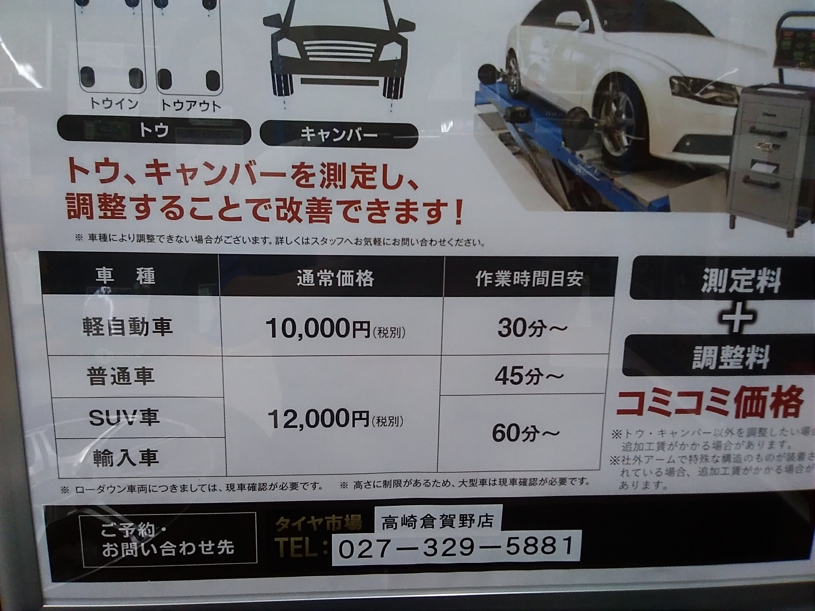 料金は普通車・SUV車・輸入車 12,000円