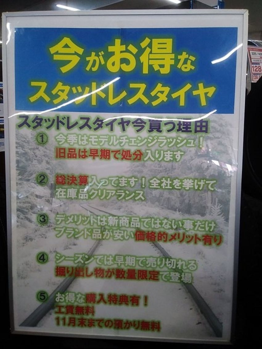 シーズン前の今はスタッドレスタイヤが大変お安くなっていますので、