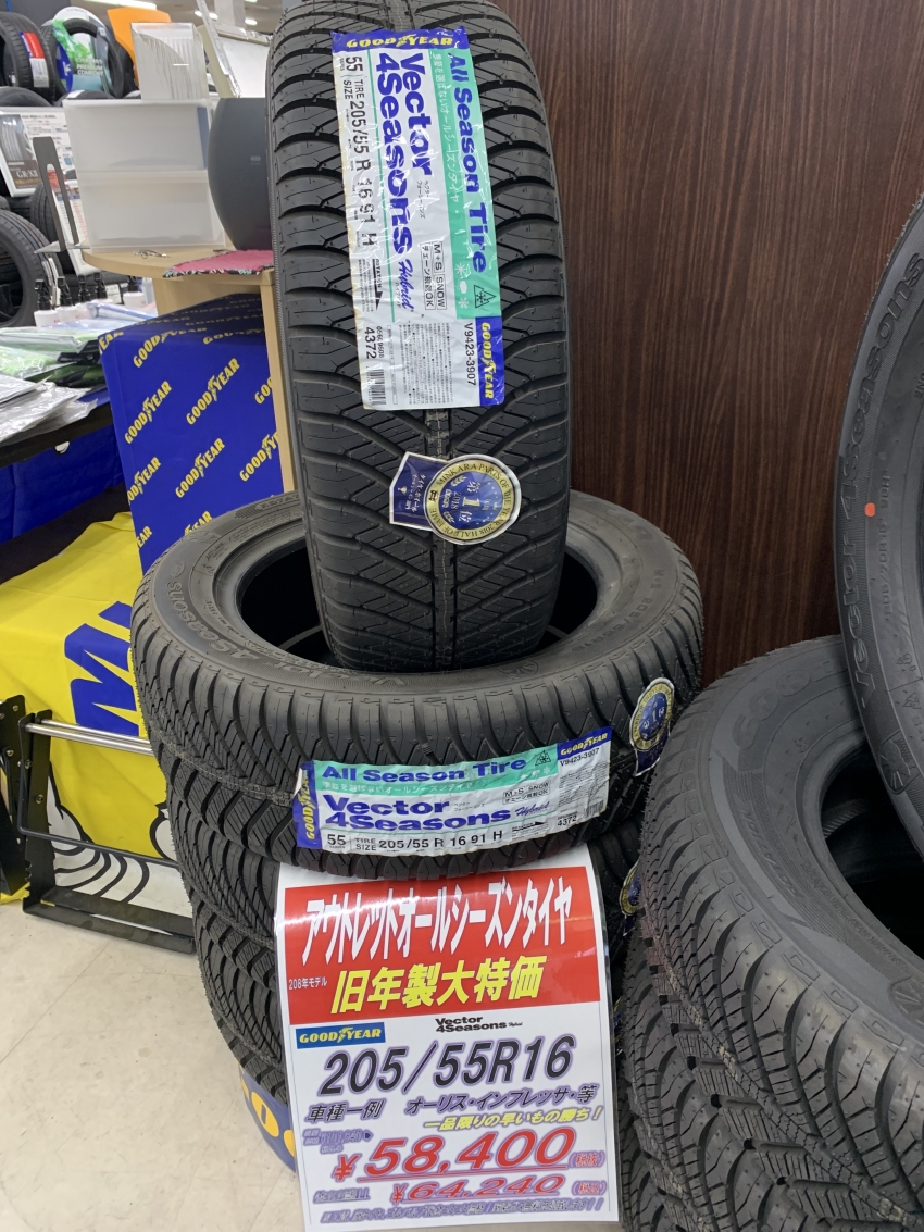 アウトレットセール開催中! 205/55R16 GOOD YEAR Vector 4Seasons!!