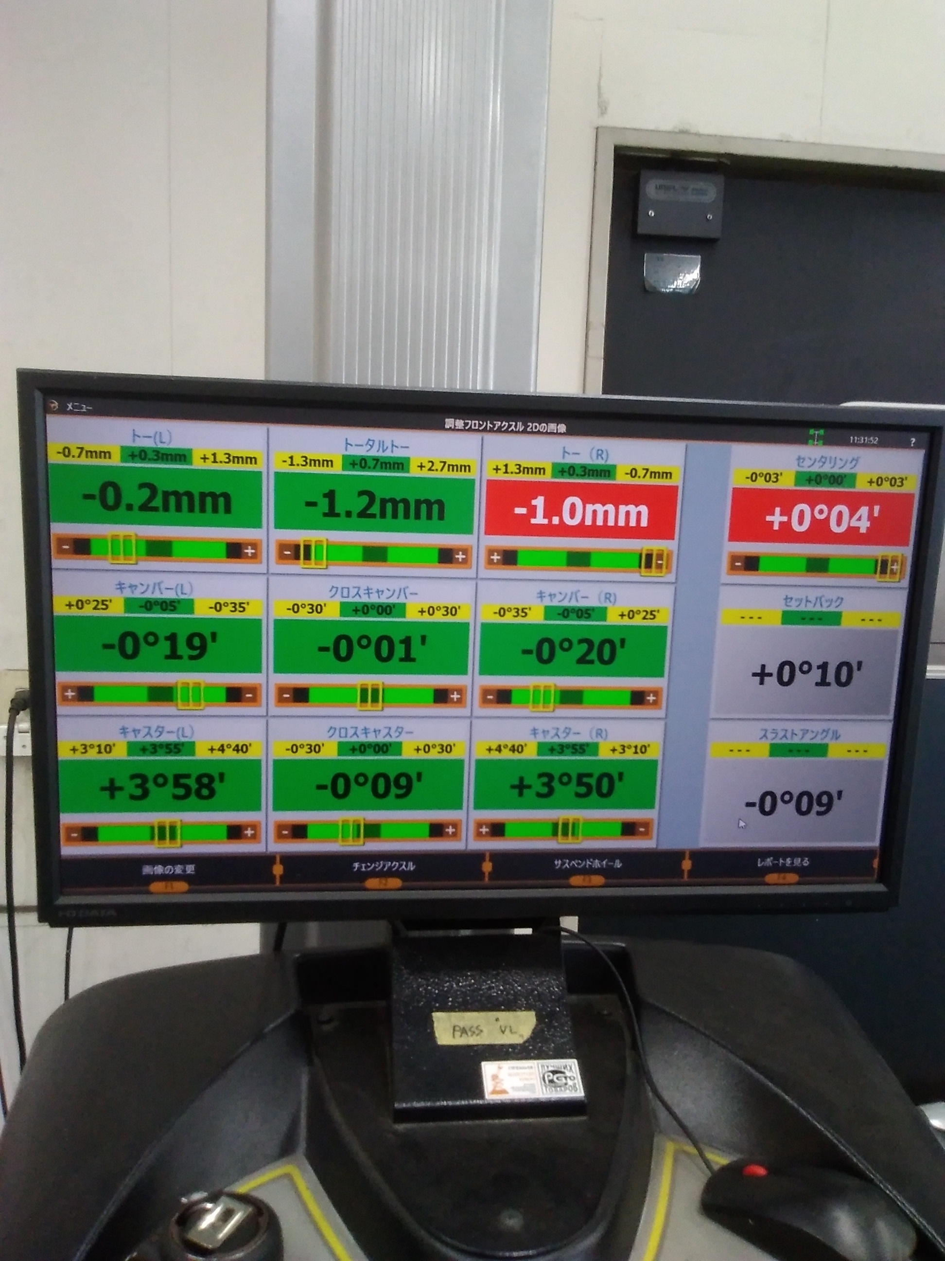 測定と調整で、ここまで作業して、軽自動車なら