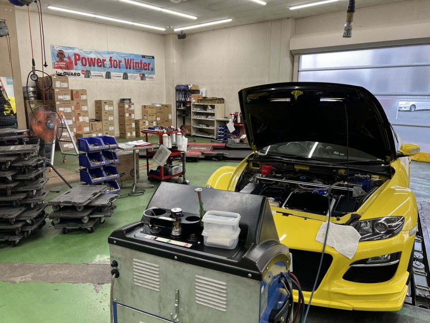 RX‐8でエアコン真空引き作業中!!