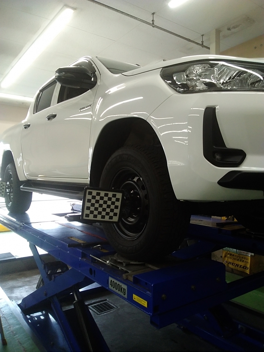 今日は朝からハイラックスでアライメント調整をさせて頂きました!