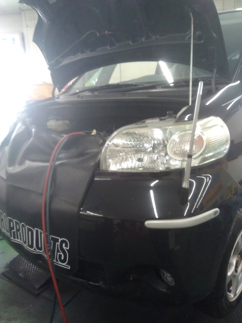 4 その後は、機械でお車のエアコンガスを一旦全部抜きます