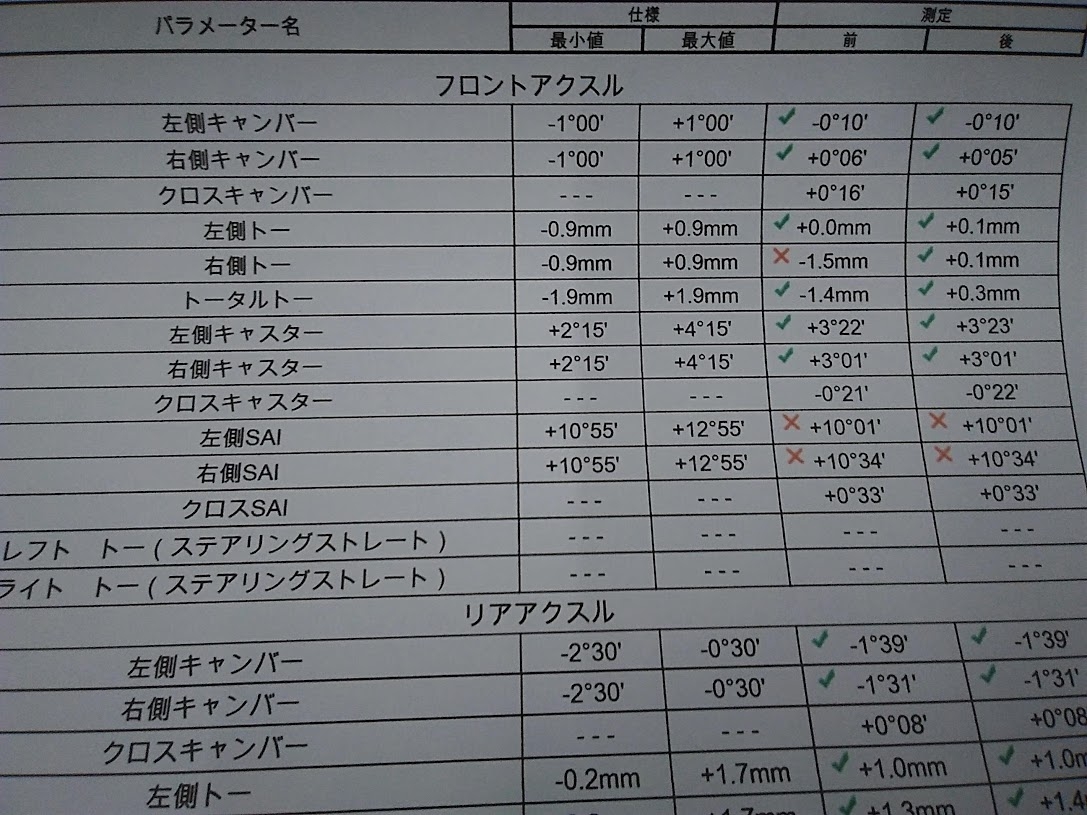 今回はタイヤの偏摩耗抑制の為、基準値で調整をしました!