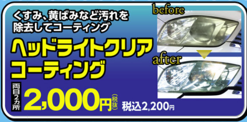 気になるライトの黄ばみや汚れをこの機会に綺麗にしませんか??