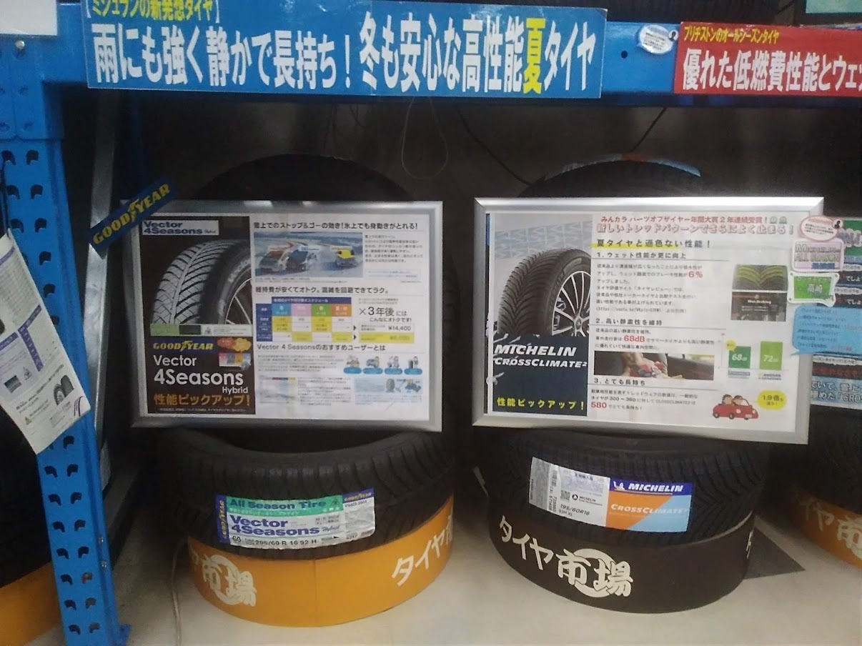 当店では様々なサイズ、メーカーのオールシーズンタイヤ