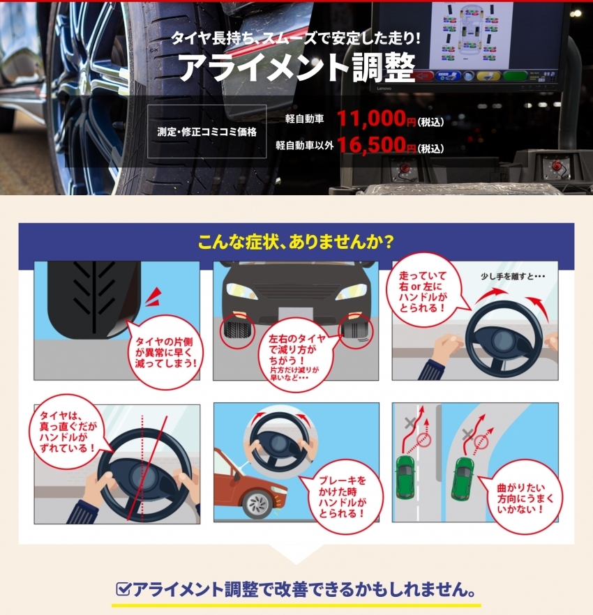今回はタイヤ市場のアライメント調整についてご紹介です!