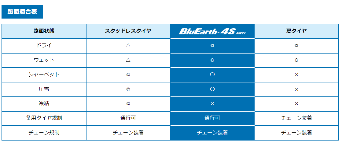 まずは、ヨコハマタイヤの ブルーアース 4S AW21