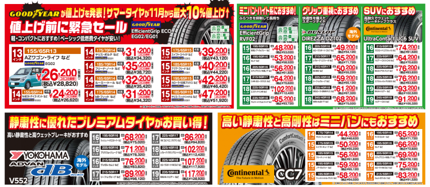 サマータイヤもオールシーズンタイヤも お買得!