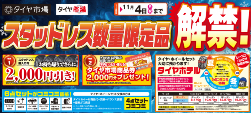 スタッドレスタイヤ 解禁セール! いよいよ残り10日を切りました!
