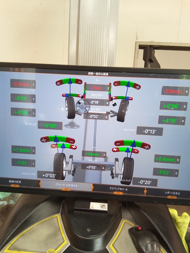 アライメント調整をして、タイヤの性能を100%にして
