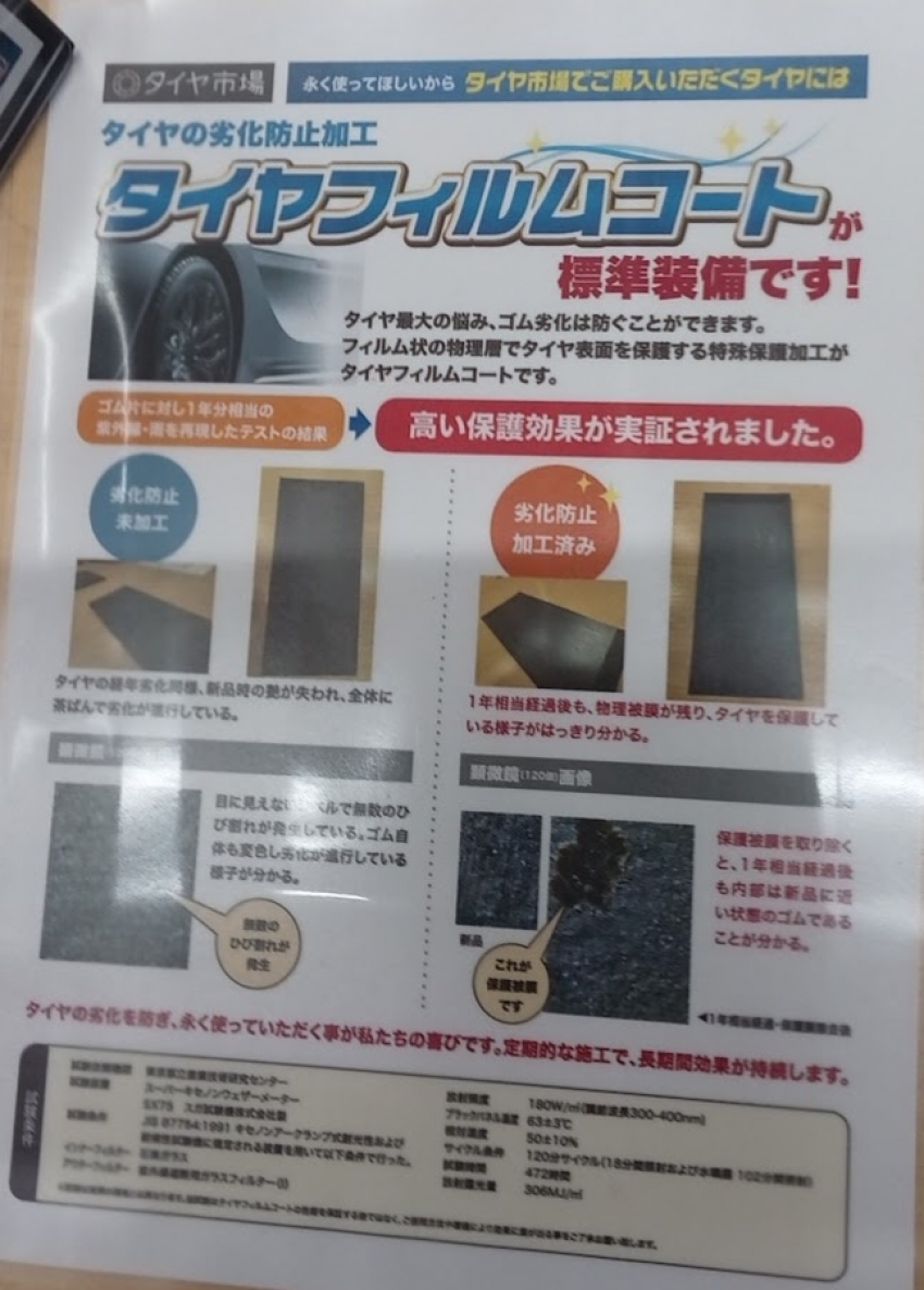 頂いたお客様には無償でタイヤのサイドウォール部の劣化防止加工を