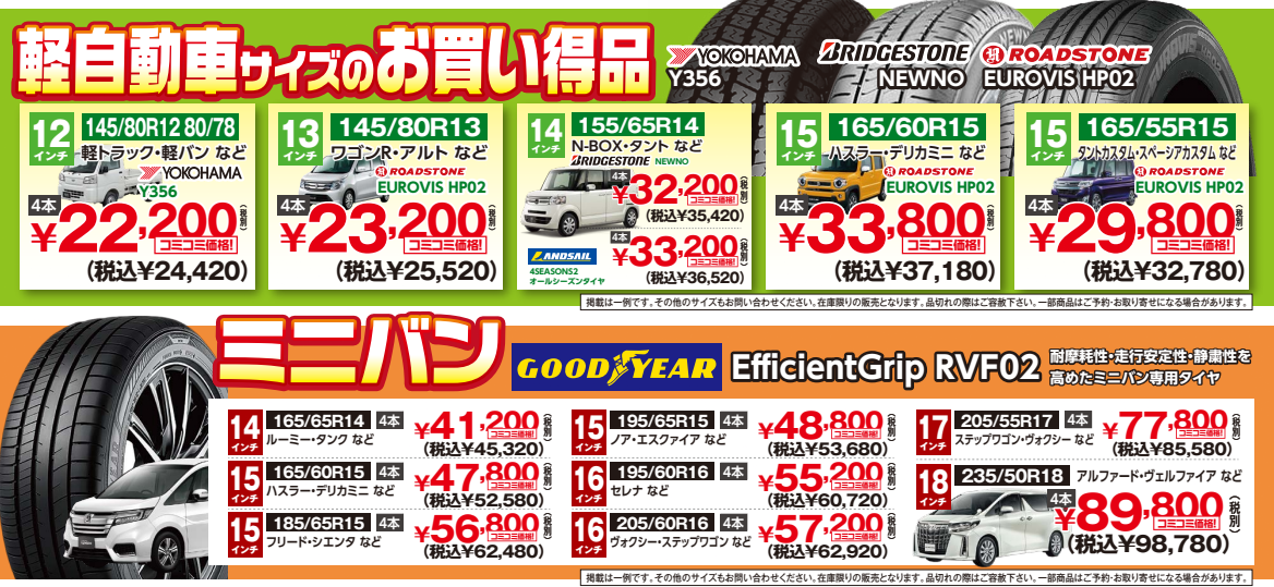 本日より タイヤ大商談会 開催中です! 有名ブランドが安い!
