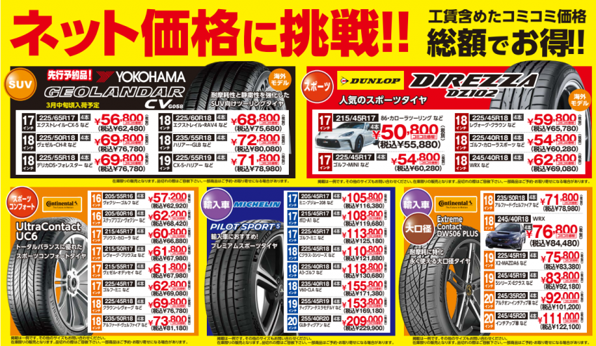 ネット価格に挑戦!! 有名ブランドタイヤが安い!