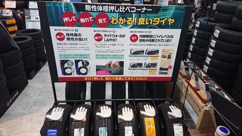 タイトル画像はタイヤの剛性押し比べコーナーです