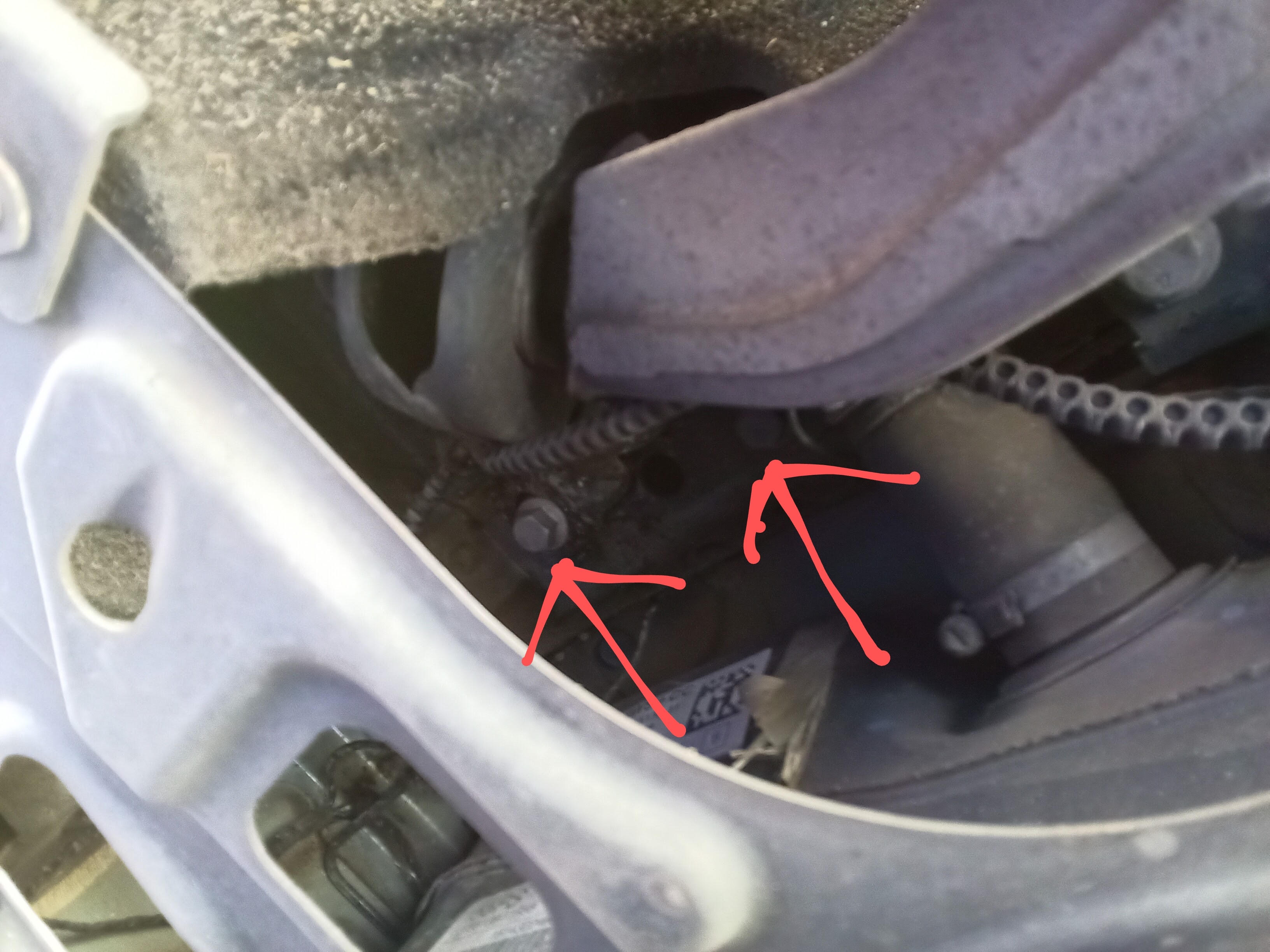 少し見づらいかもしれませんが赤→のナットを緩めてタイヤ自体を動かして調整する形になります!