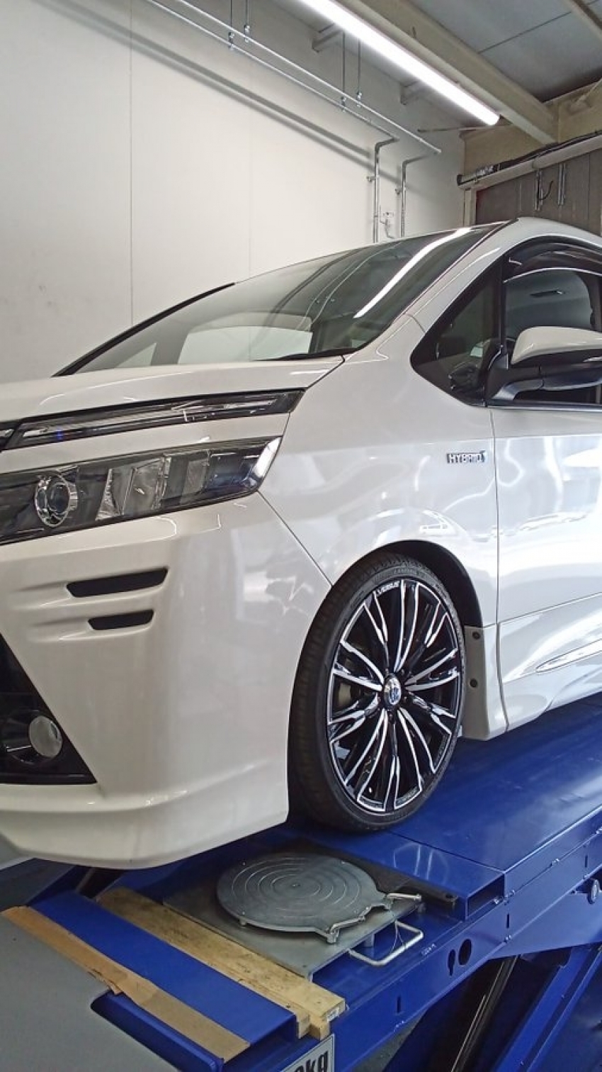 本日1台目の作業!ヴォクシーのタイヤ交換とアライメント調整をさせて頂きました!