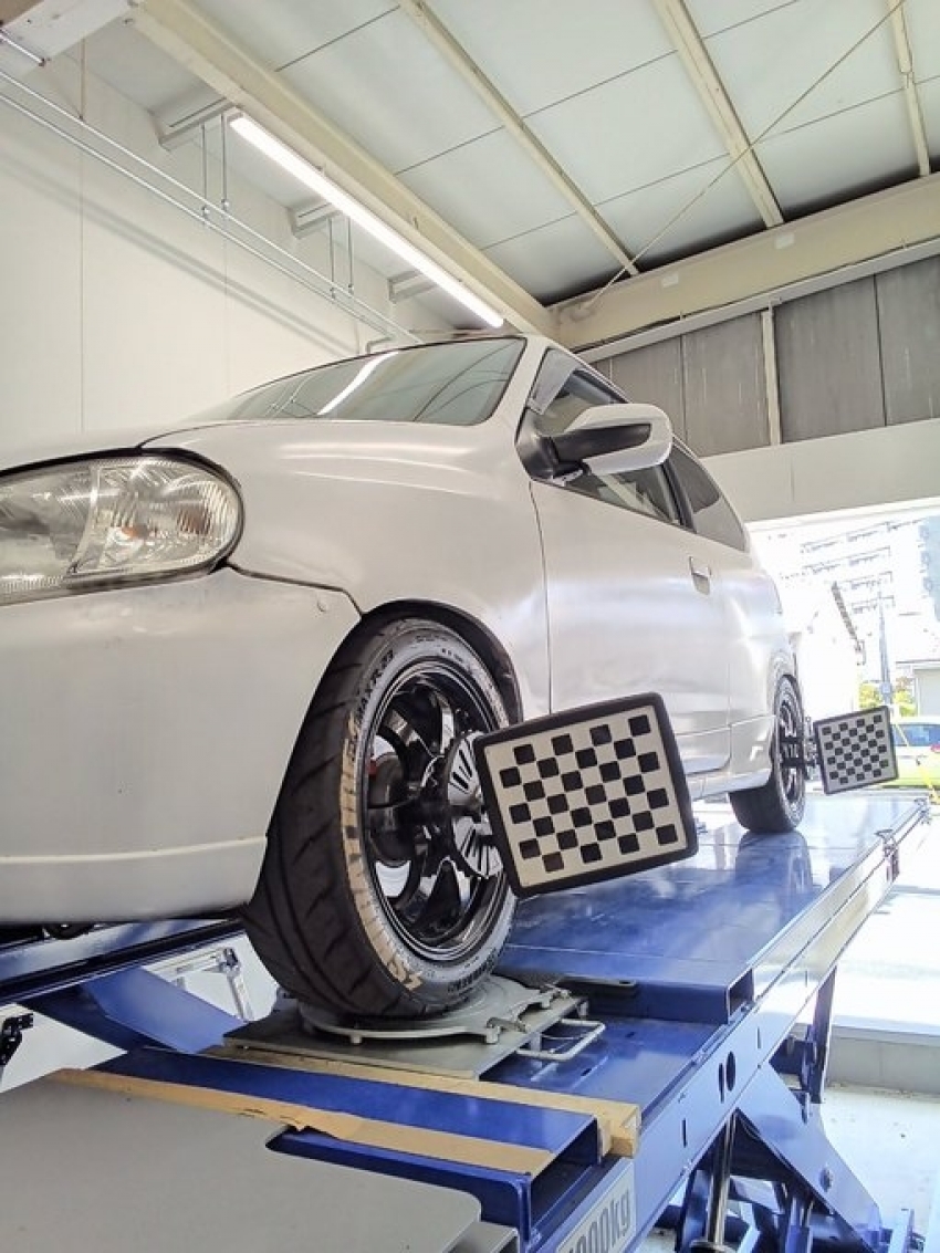 本日アルトワークスのアライメント調整をさせて頂きました!高崎周辺で安くアライメント調整をするならタイヤ市場へ!