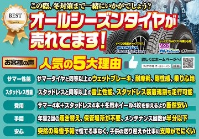 スタッドレス派?オールシーズン派? お得なセールも開催中!高崎市周辺にお住まいの方はタイヤ市場高崎緑町店へ!