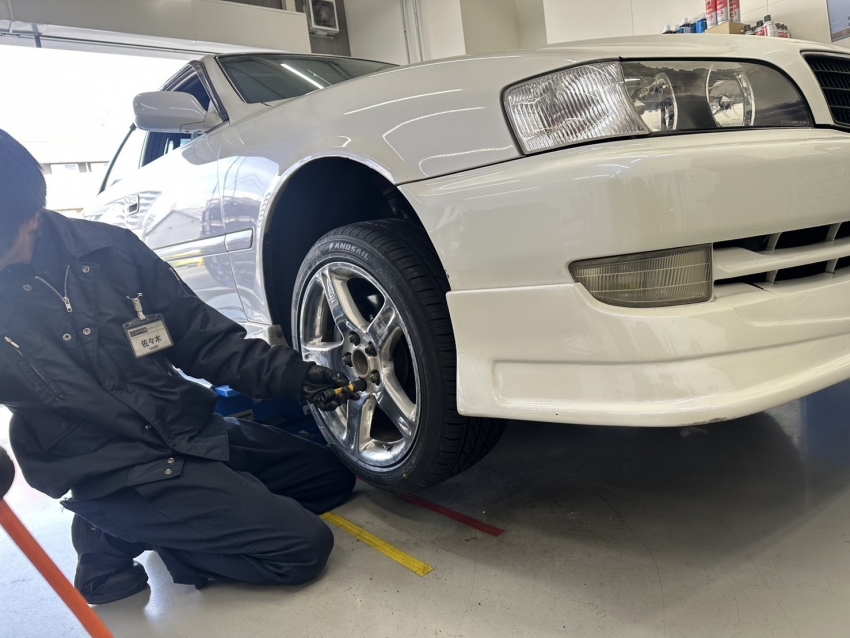 【トヨタ・チェイサー】のフロント2本交換とアライメント調整をさせていただきました!高崎市周辺でアライメント調整を検討中の方はタイヤ市場高崎緑町店までお越しください!
