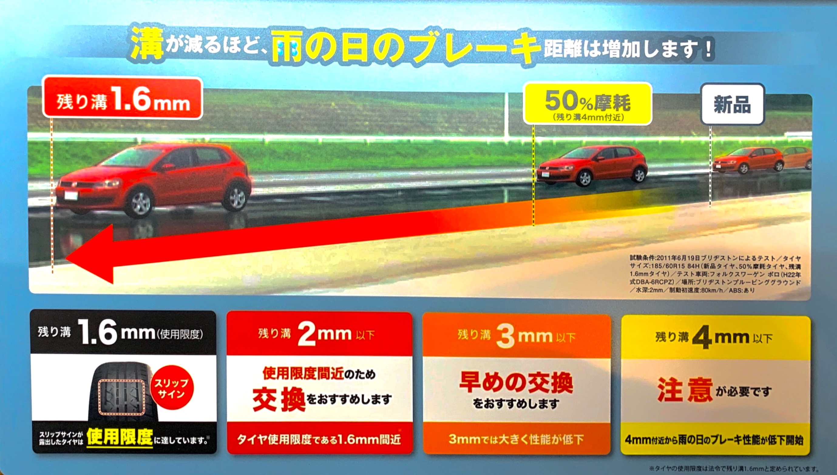 残溝が3㎜を切ると性能が大きく低下すると言われています。