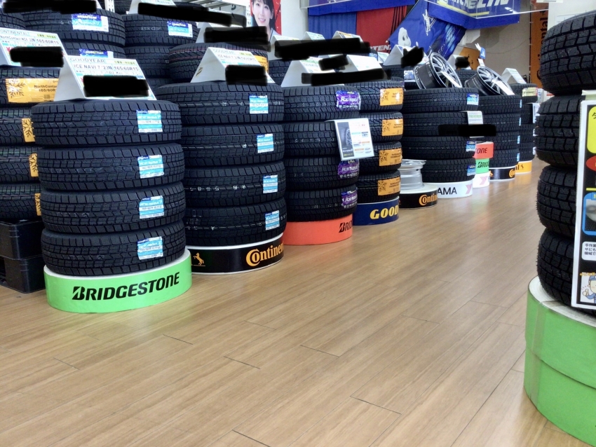 店頭の売り場を夏から冬仕様に変更!当店オススメのスタッドレスタイヤを展示しております!!