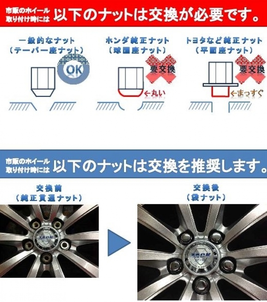 特にトヨタ・ホンダ車はナットの形状が夏と冬が違う為特に要注意です!