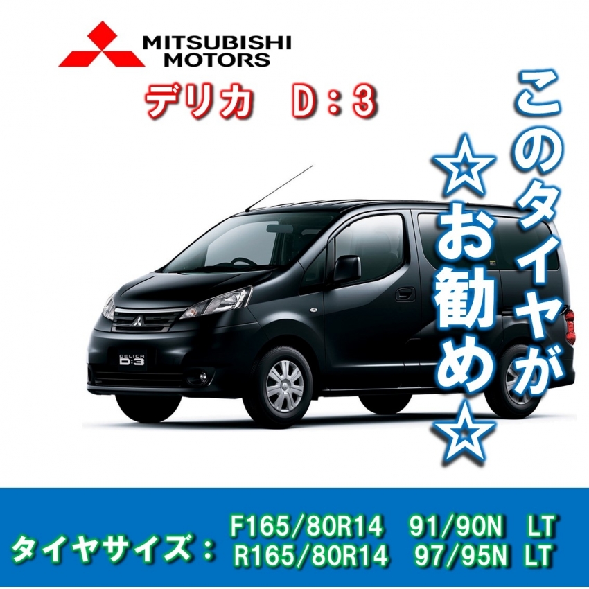 デリカD:3にお勧めのタイヤ!(F165/80R14 91/90N LT R165/80R14 97/95N LT)!タイヤ市場館林店なら選べる!あなたは性能で選ぶ?価格で選ぶ?ご希望の商品を見つけます!