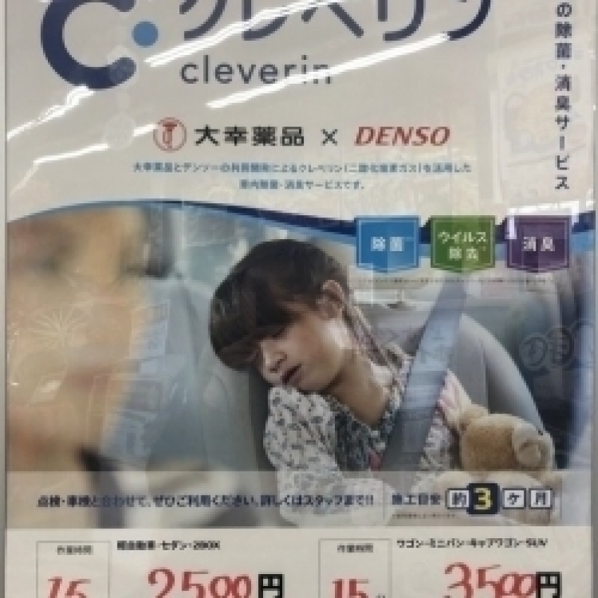 外出先のウイルスをご自宅に持ち帰らないようにクレベリンで愛車を除菌しちゃいましょう!!
