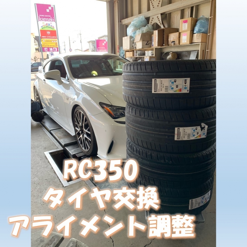 レクサス RC350 (DBA-GSC10)タイヤ交換・アライメント調整(ブリヂストン ポテンザスポーツ 235/40R19・265/35R19)