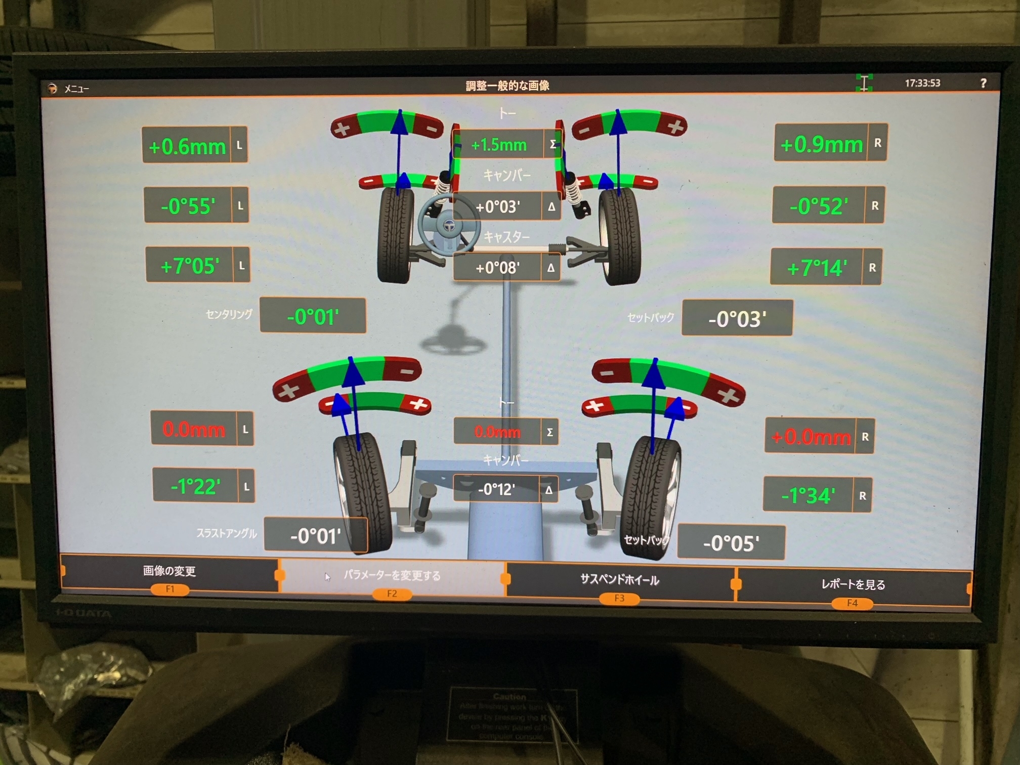 後輪側は基準値よりだいぶずれていました(;'∀')