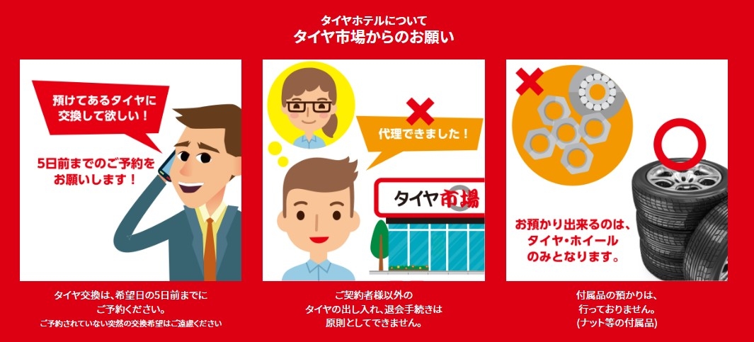 タイヤとホイールセットの預かりサービス。「タイヤホテル」おすすめサービスです!!