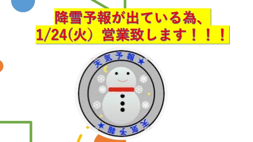 1/24(火)降雪予報が出ている為、営業致します!!