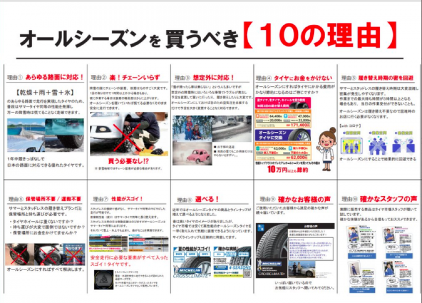 昨今オールシーズンタイヤを選択する方、増えています!