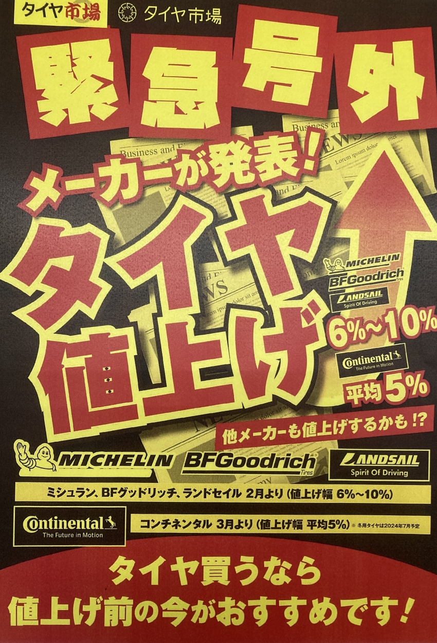 本日は、タイヤの値上がりについてのお知らせです。
