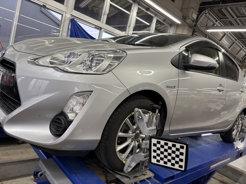 トヨタ:アクアのアライメント調整を作業させていただきました!」
