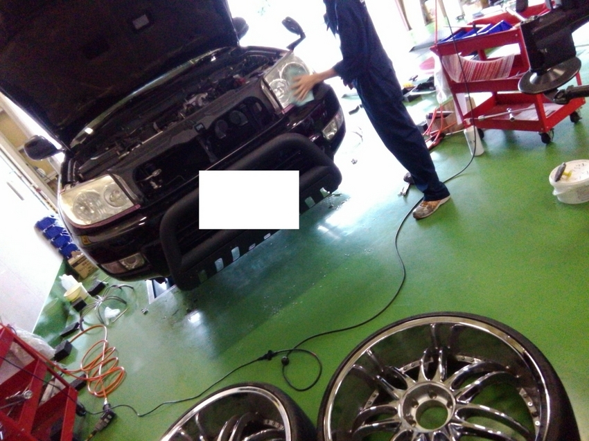 今回はフロント前2本交換ですね。 当たり前ですけど大きいです!!そして重いです(笑) 作業後はやっぱりカッコいいと感じてしまいました。タイヤの大きさが違うだけで もう別の車のような感じです。存在感が凄いです!!