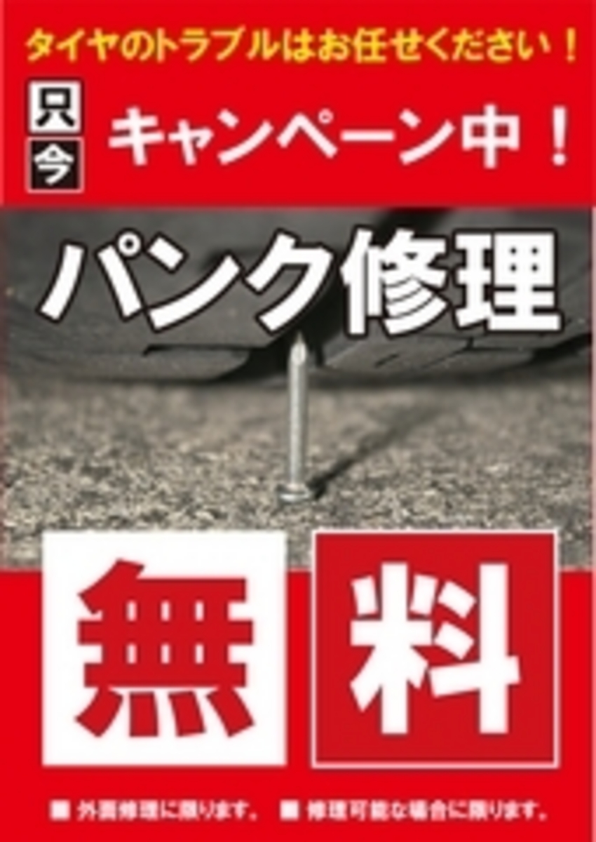 思わぬタイヤのパンクを無料で修理いたします!