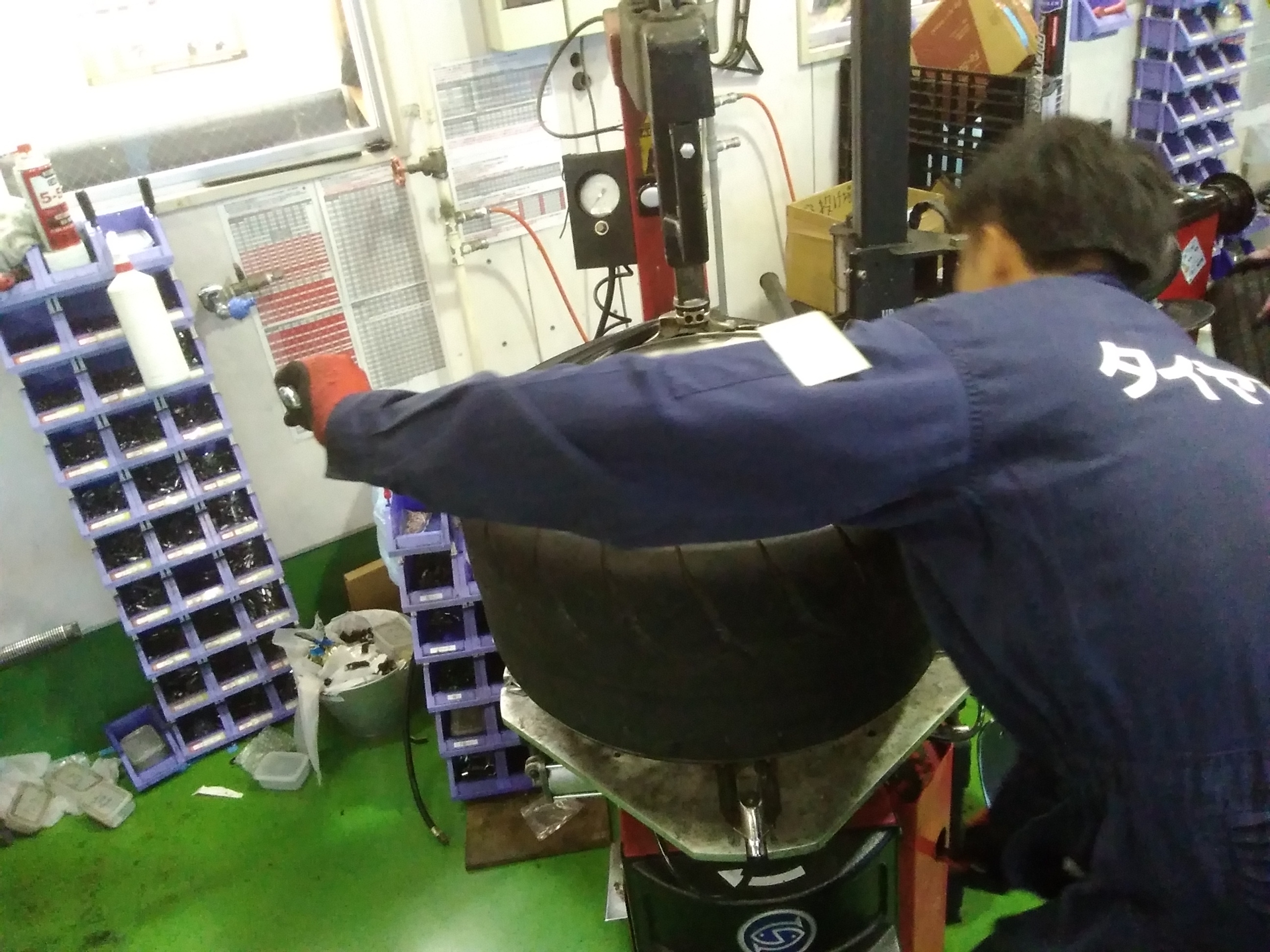 ホイールから一度タイヤを外してin側とout側を反転させて再度組み付ける作業
