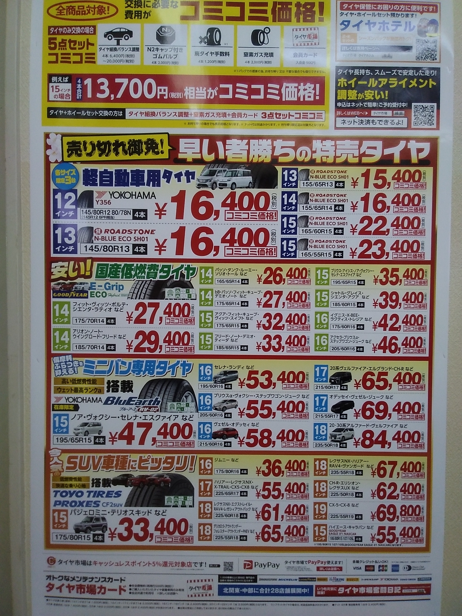 売り切れ御免の特売タイヤもありますので