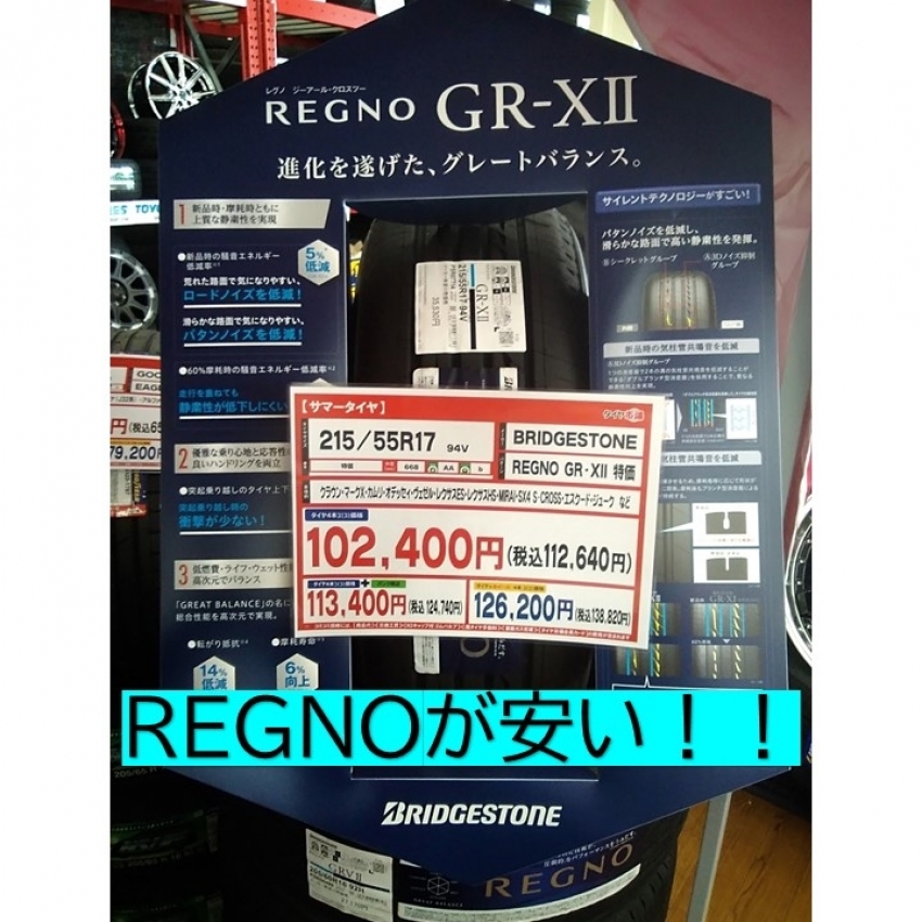 ブリヂストンのレグノが大変お安くなっております!