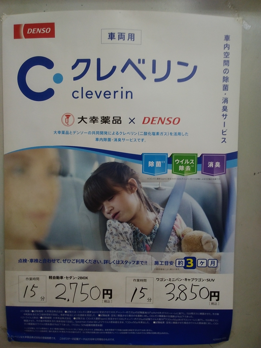 車内を密閉にして15分間クレベリンの機械を設置するだけで3か月間の効果が持続出来ます(^^♪