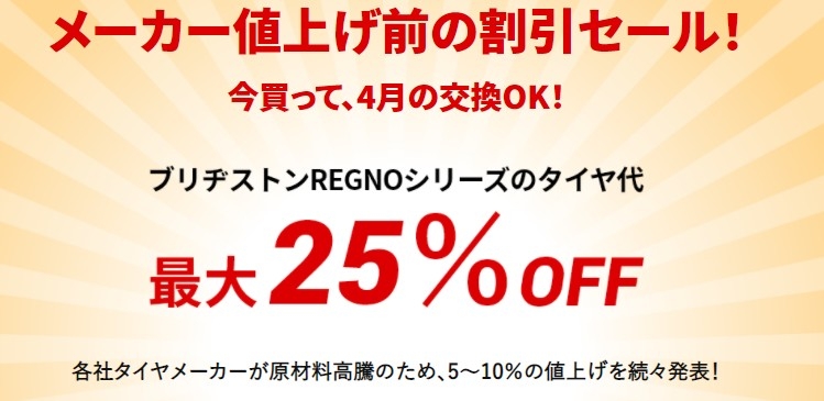 値上前緊急セール!ブリヂストンREGNOシリーズが数量限定で安い!