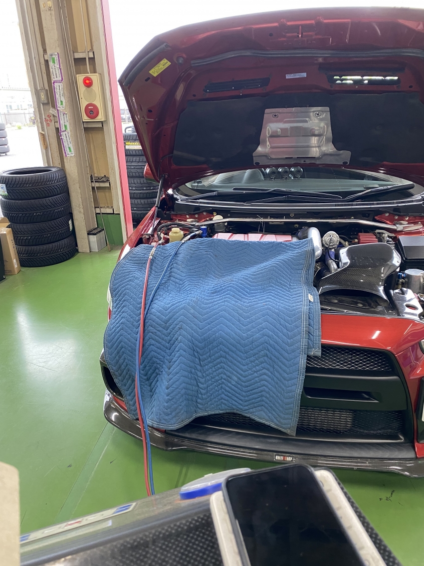 本日はランエボのお客様がエアコンガスの補充をしにご来店されました!
