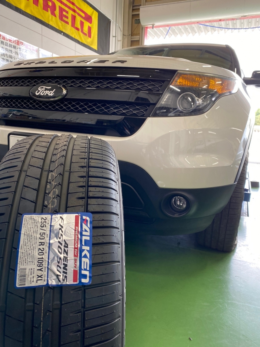 フォード エクスプローラーのタイヤ4本交換!20インチでもお任せ♪
