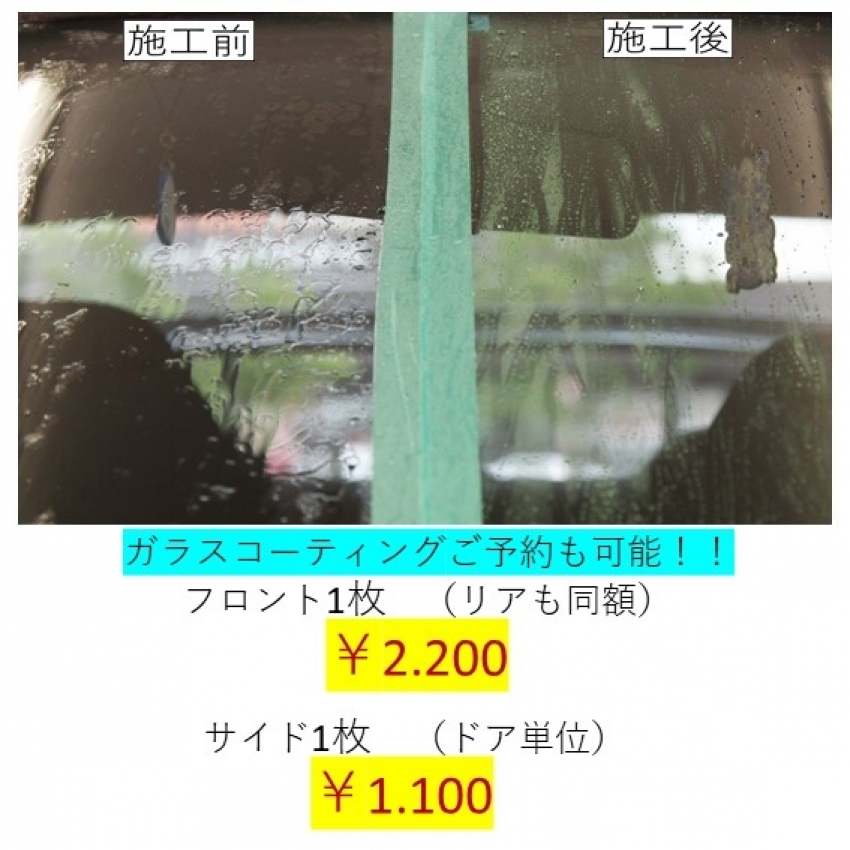 タイヤショップだけど・・・ガラスコーティングもやってます!!梅雨で前が見ずらいなんてことも解決(^^)/