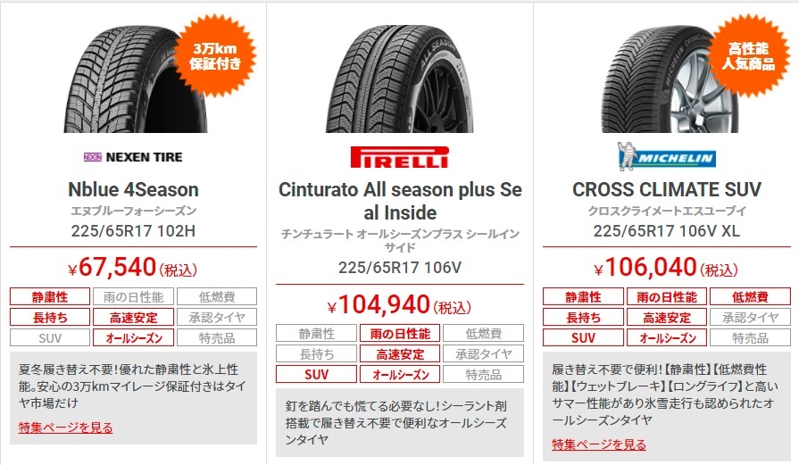 225/65R17 オールシーズンタイヤなら