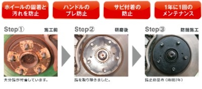 「サビ」が生じるのを防ぐ施工で、ハブ部分の錆びを落としその後、