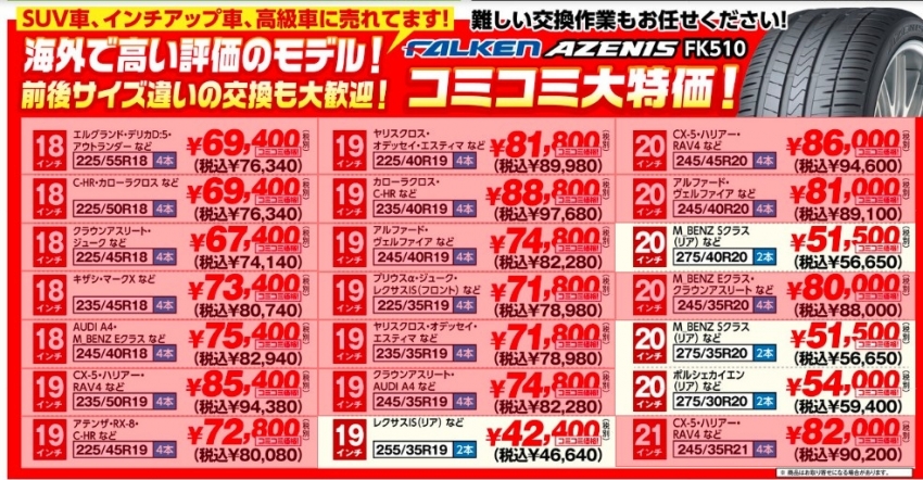 大口径18・19・20インチが安い!
