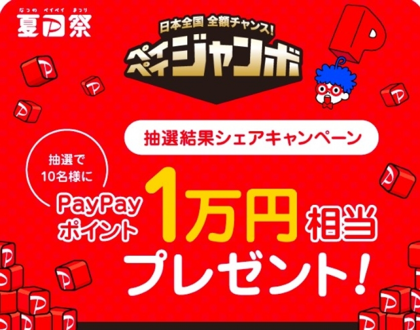夏のPayPay祭 Twitterペイペイジャンボ抽選結果シェアキャンペーンですよ~~